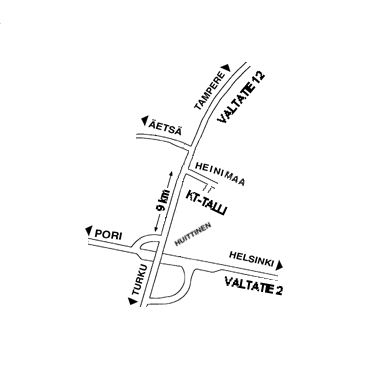 Tarvittaessa noudamme ja viemme lähimmille linja-auto- (Huittinen) ja rautatieasemille (Vammala).Matkat: Helsingistä 180 km, Turusta 100 km, Tampereelta 70 km ja Porista 60 km.
